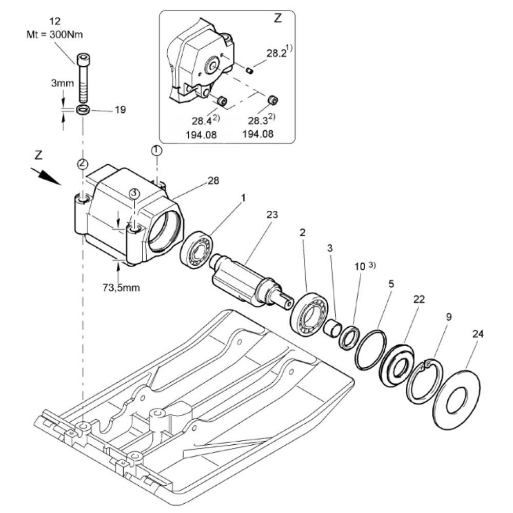 The Exciter Unit Assembly for the Bomag BVP18/45 Forward Compactor is a genuine Bomag part designed to enhance the machine's performance. This assembly plays a crucial role in generating the necessary vibrations for effective compaction. It includes components such as gears, bearings, and shafts, ensuring optimal functionality and longevity.