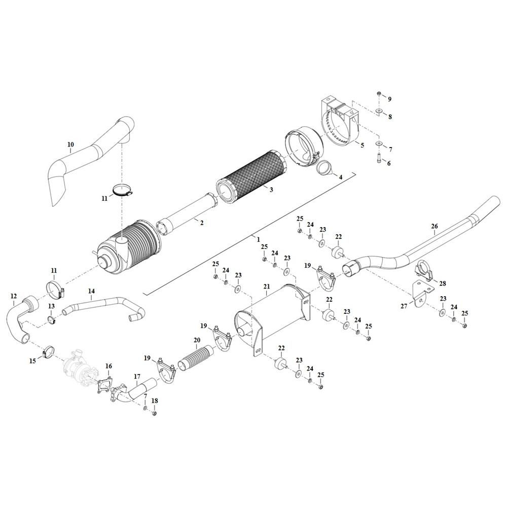The Exhaust Assembly for the Wacker TH412 Telehandler is designed to ensure optimal engine performance and emission control. This assembly includes components such as pipes, mufflers, and gaskets, which work together to efficiently expel exhaust gases. Suitable for the 3TNV84T engine, it helps maintain the telehandler's reliability and efficiency in various operational settings.