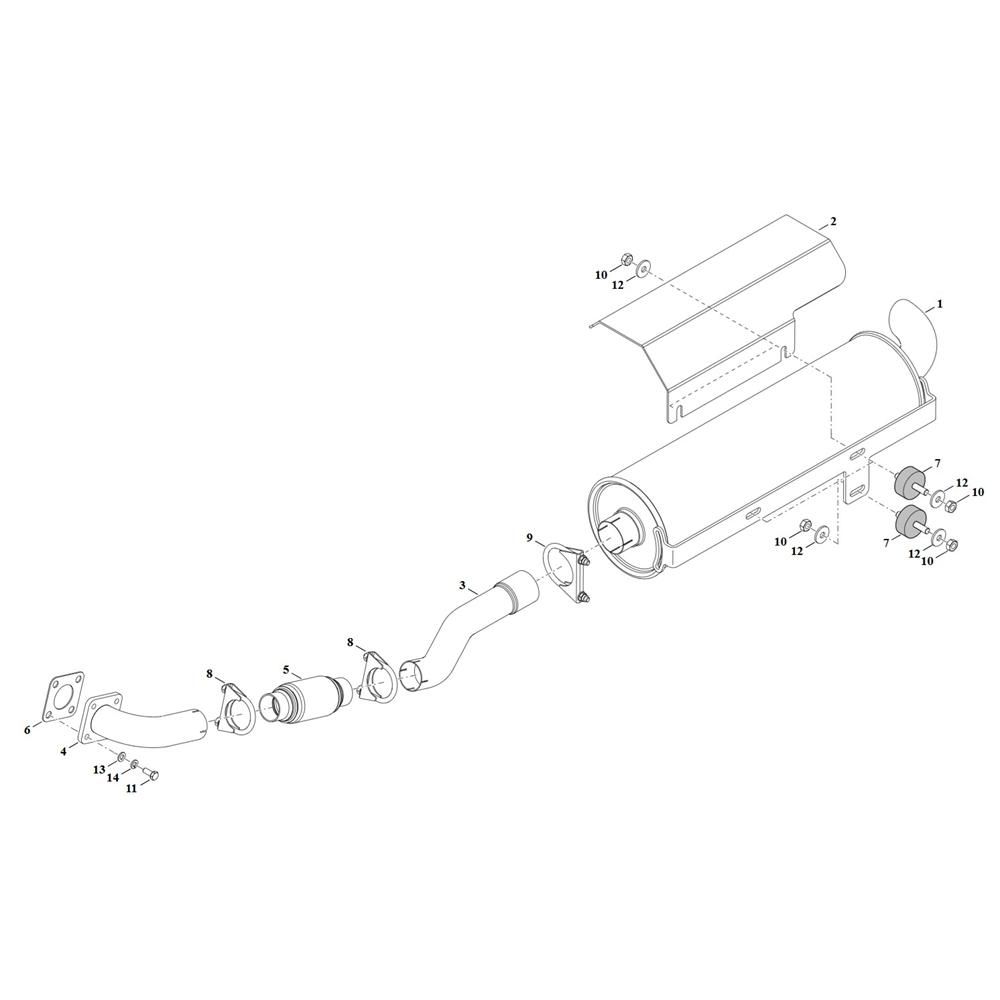 The Exhaust Assembly for the Wacker TH522 Telehandler is designed to efficiently manage engine emissions and ensure optimal performance. This assembly includes components such as pipes, mufflers, and gaskets, which work together to reduce noise and direct exhaust gases safely away from the engine. Suitable for routine maintenance and repair, it helps maintain the telehandler's reliability and efficiency.