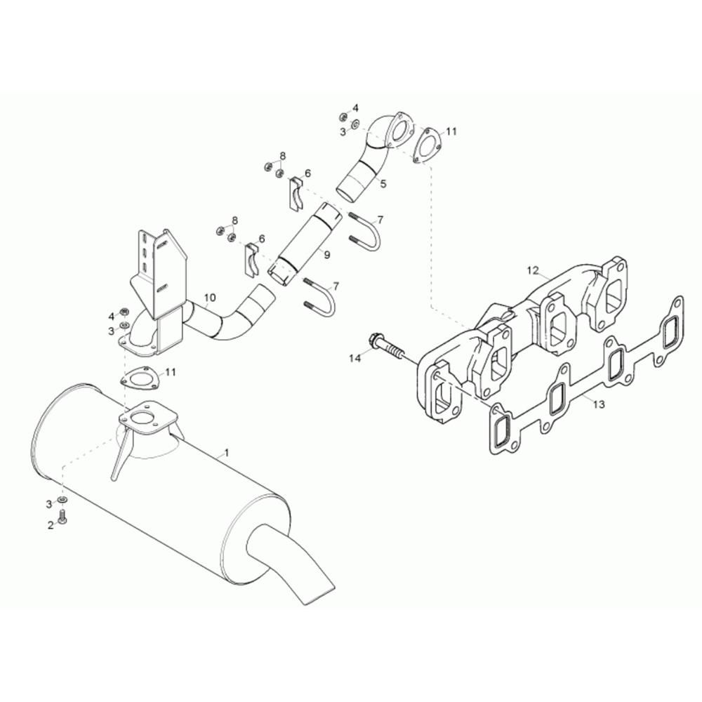 The Exhaust Assembly for the Neuson 6001 Dumper is designed to ensure optimal performance and efficiency. This assembly includes components such as pipes, mufflers, and gaskets, which work together to manage exhaust flow and reduce noise. Essential for maintaining engine health, these parts help in controlling emissions and enhancing the dumper's operational lifespan.