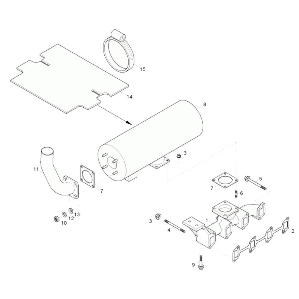 The Exhaust Assembly for the Wacker 50Z3 Mini Excavator is designed to ensure optimal engine performance by effectively directing exhaust gases away from the engine. This assembly includes components such as mufflers, pipes, and gaskets, which help reduce noise and emissions. Suitable for routine maintenance and repair, it supports the longevity and efficiency of your excavator.