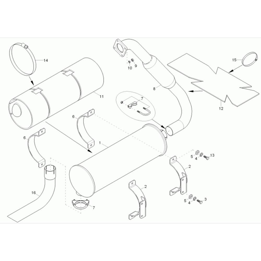 The Exhaust Assembly for the Wacker 9001 Dumper is designed to ensure optimal engine performance by efficiently expelling exhaust gases. This assembly includes components such as mufflers, pipes, and gaskets, which work together to reduce noise and emissions. Genuine Wacker Neuson parts ensure compatibility and durability, maintaining the dumper's reliability and efficiency.
