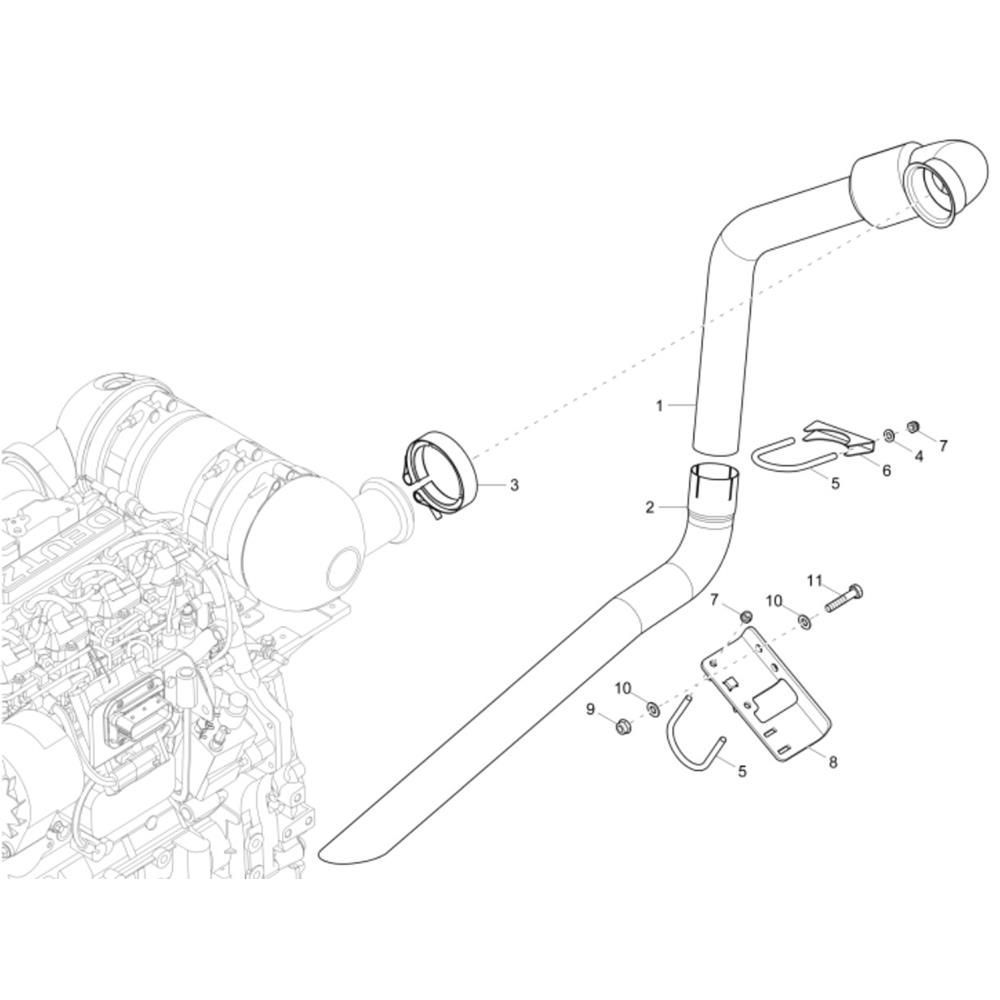 The Exhaust Assembly for the Wacker DW90-2 Dumper is designed to ensure optimal engine performance and emission control. This assembly includes components such as mufflers, pipes, and gaskets, which work together to efficiently expel exhaust gases and reduce noise. Essential for maintaining the dumper's operational efficiency, it supports prolonged engine life and compliance with emission standards.