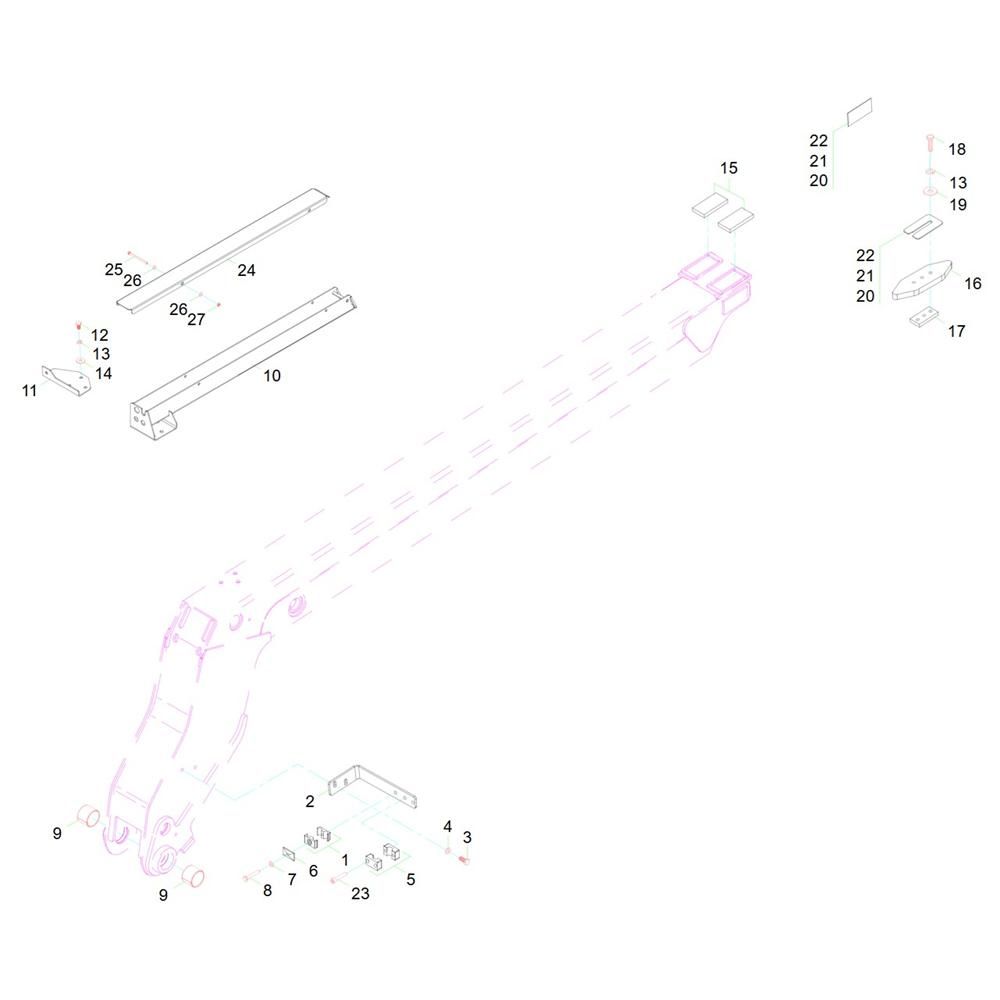 The Extension Arm Assembly for the Wacker TH408 Telehandler is designed to enhance the machine's reach and versatility. This assembly includes crucial components such as hydraulic cylinders, pivot pins, and mounting brackets, ensuring optimal performance and durability. Ideal for construction and agricultural applications, it supports efficient handling of materials at various heights.