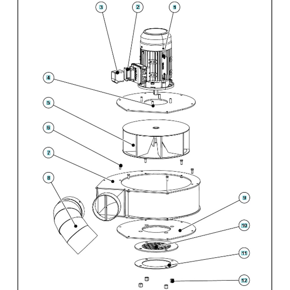 The Fan Assembly 2 for the Husqvarna BLASTRAC EBE 500 Steel Shot Blaster is designed to ensure optimal performance and longevity of the machine. This assembly includes components that facilitate efficient air circulation, crucial for maintaining the blaster's functionality. Genuine Husqvarna parts ensure compatibility and reliability, supporting effective dust and debris management.