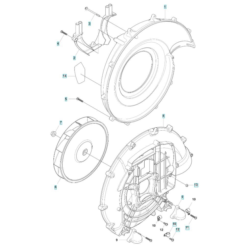 The Fan Assembly for the Husqvarna 580BFS Mark III Blower ensures optimal airflow and performance. This assembly includes key components such as the fan blade, housing, and mounting hardware, designed to maintain efficiency and prolong the blower's lifespan. Genuine Husqvarna parts guarantee compatibility and reliability for demanding outdoor tasks.