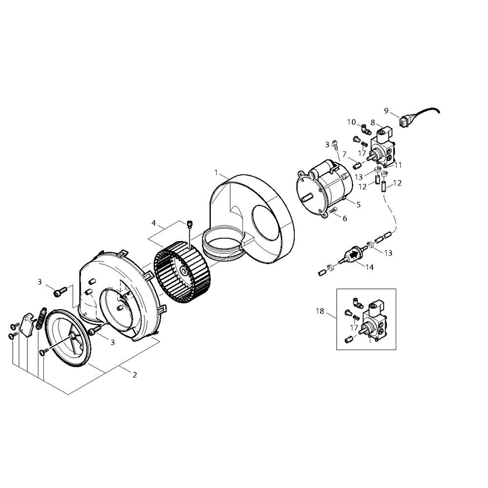 The Fan Assembly for the Nilfisk MH 4M-190/960 400/3/50 Pressure Washer is designed to ensure optimal cooling and performance. This genuine Nilfisk component helps maintain the efficiency of your pressure washer by facilitating airflow and preventing overheating. Essential for regular maintenance, it includes parts like blades, housings, and mounting hardware.