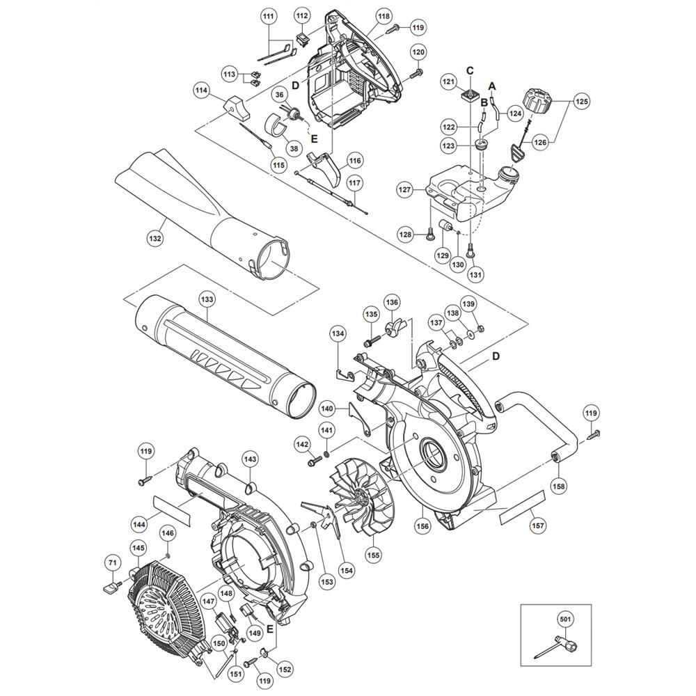 The Fan Case and Fuel Tank for the Tanaka TRB27EP Blower are essential components designed to ensure optimal performance and longevity. The fan case houses the blower's fan, directing airflow efficiently, while the fuel tank stores fuel securely for uninterrupted operation. These genuine Tanaka parts are crafted for precise fit and reliability, maintaining the blower's functionality and efficiency.