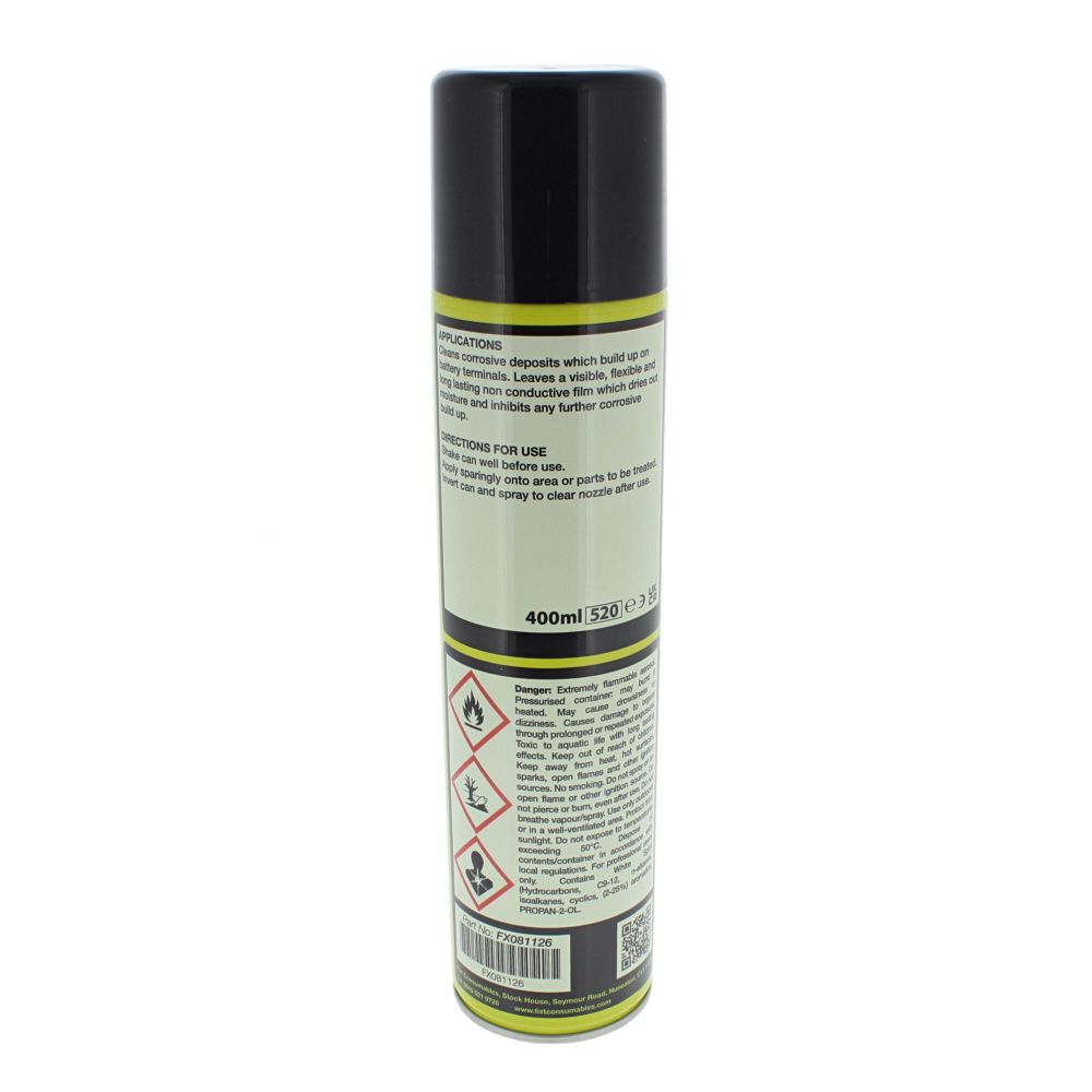 The FIXT Battery Terminal Protector is a solvent-borne protective compound supplied in a convenient 400 ml aerosol can (approx. 13.5 fl oz). It cleans light oxide and corrosive residues from battery posts, clamps and cable lugs, then leaves a moisture-repellent, non-conductive film to help prevent new corrosion forming. Use it on 6 V, 12 V and 24 V battery connections across cars, vans, HGVs, plant and agricultural machinery, generators, forklifts and marine equipment. By keeping terminals clean and sealed, it helps maintain low resistance joints for reliable starting and stable charging. Manufacturer Part Number: FX081126. Brand: FIXT. Suitable as part of routine electrical maintenance where batteries are exposed to weather, washdowns, road salt, acid vapour or general industrial environments.