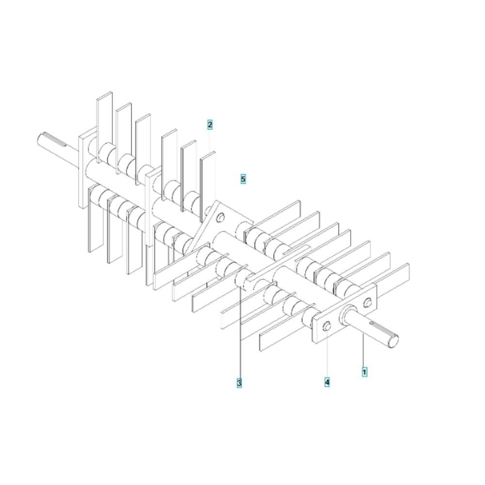 The Flail Blade Assembly for the Husqvarna SD22H5DSA Dethatcher is designed to enhance the dethatching process by efficiently removing thatch and promoting healthy lawn growth. This assembly includes genuine Husqvarna parts, ensuring compatibility and optimal performance. Components such as blades, spacers, and fasteners are included to maintain the machine's effectiveness and longevity.