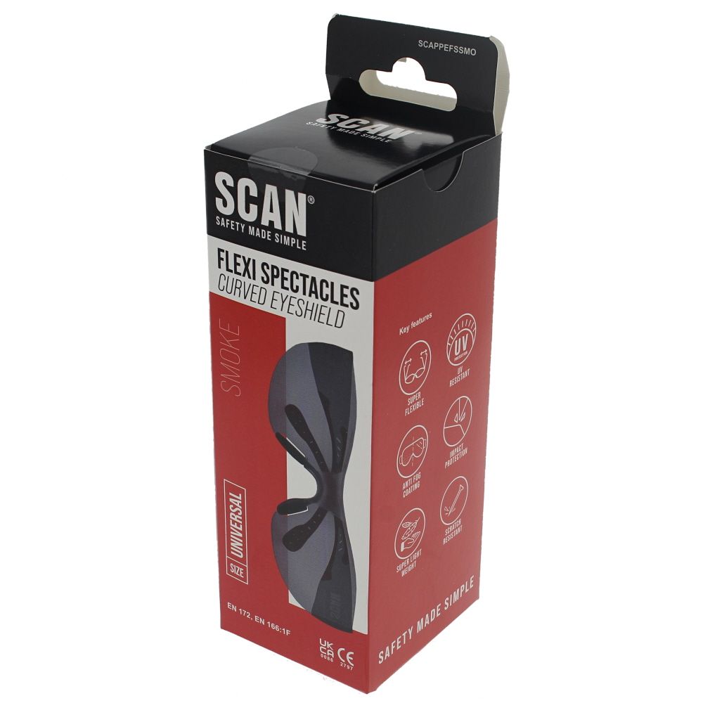 The Scan Flexi Wraparound Safety Glasses with Smoke Lens are lightweight eye protectors designed for outdoor work around power tools and machinery. A single-piece, wraparound polycarbonate lens provides broad coverage across the eyes and sides, helping to shield against flying debris and wind. The smoke-tinted lens reduces glare in bright sunlight to maintain usable contrast and comfort. An anti-fog coating helps keep vision clear when moving between temperatures or during physical work. Flexible, low-profile arms and a soft nose bridge promote a secure, comfortable fit for long shifts. UV-resistant to EN170, they are suited to trades, landscaping, construction, and grounds maintenance, whether you are cutting, grinding, or mowing. Built for reliable daily wear, these glasses balance protection, clarity, and comfort in demanding outdoor conditions.