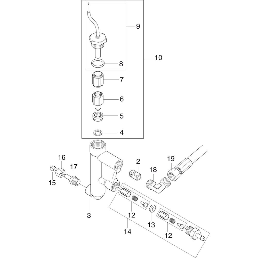 The Flow Control Assembly for the Nilfisk MH 7P-175/1260 400/3/50 Pressure Washer is essential for managing water flow and pressure during operation. This assembly includes components like valves, seals, and connectors, ensuring efficient performance and longevity of the machine. Designed for routine maintenance, it helps maintain optimal pressure levels and prevents leaks.