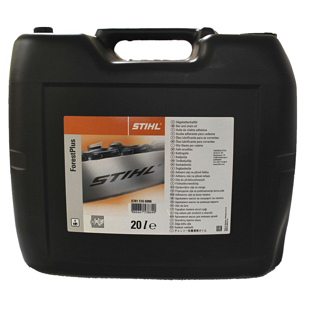 Bar and chain oil, chainsaw bar oil, chain lubricant, ForestPlus bar oil, Stihl chain and bar lubricant, chainsaw lube oil, mineral chain oil.