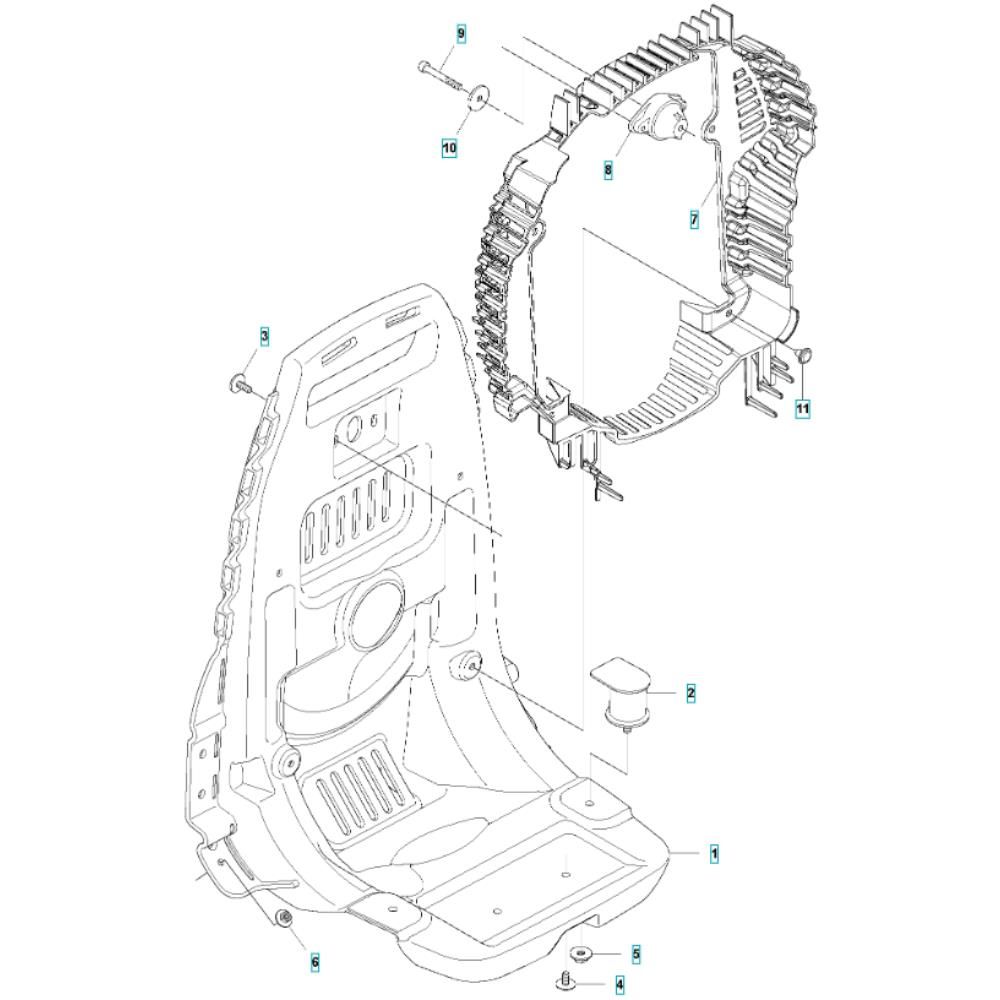The Frame Assembly for the Husqvarna 580BFS Mark II Blower is designed to provide structural support and stability. This assembly includes key components such as brackets, fasteners, and protective covers, ensuring the blower operates efficiently. Genuine Husqvarna parts are used to maintain the integrity and performance of the blower, making it suitable for demanding outdoor tasks.