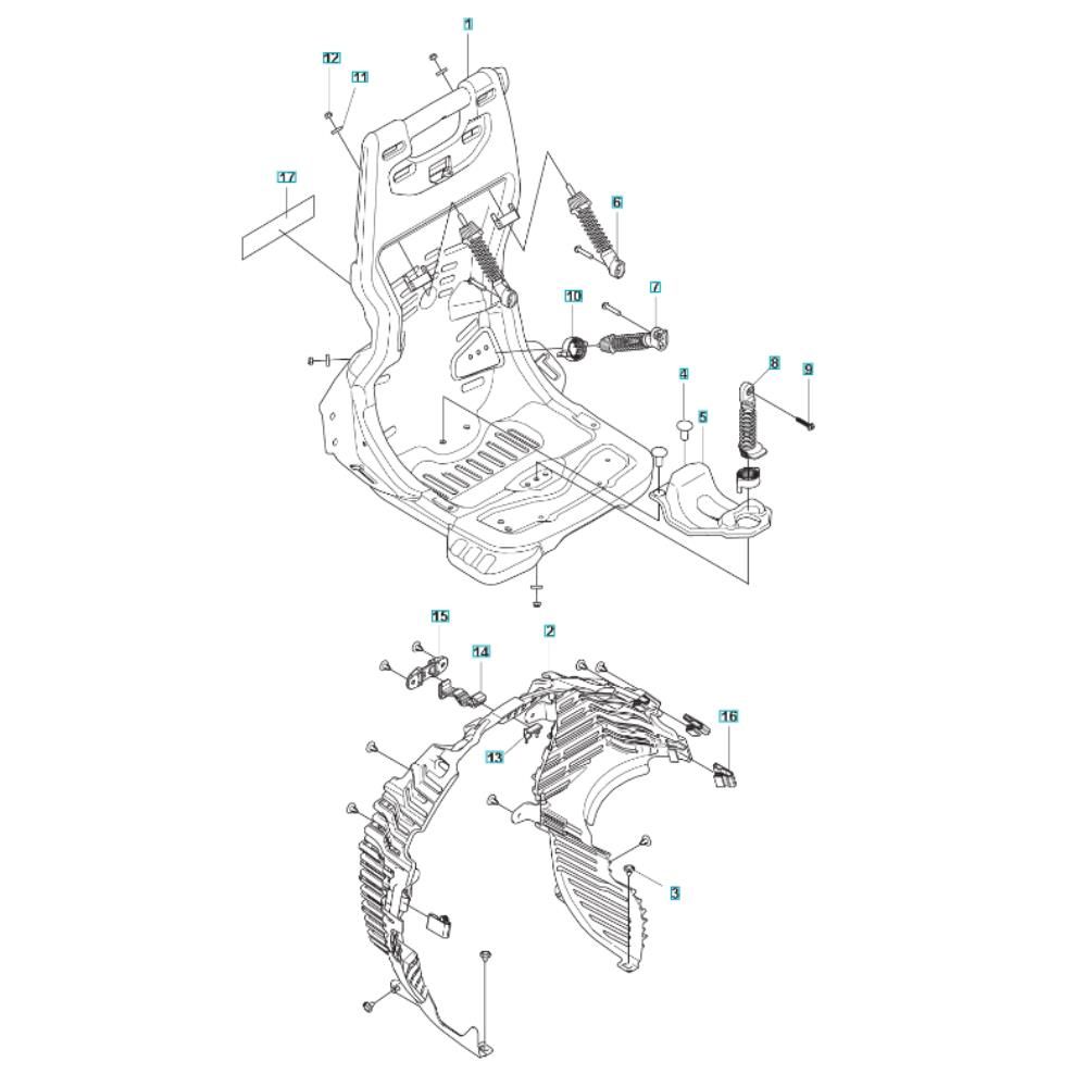 The Frame Assembly for the Husqvarna 590BTS Blower is designed to support and stabilise the blower during operation. This assembly includes key components such as brackets, fasteners, and support structures, ensuring the blower remains secure and efficient. Essential for maintaining the blower's performance, it helps reduce vibration and wear.