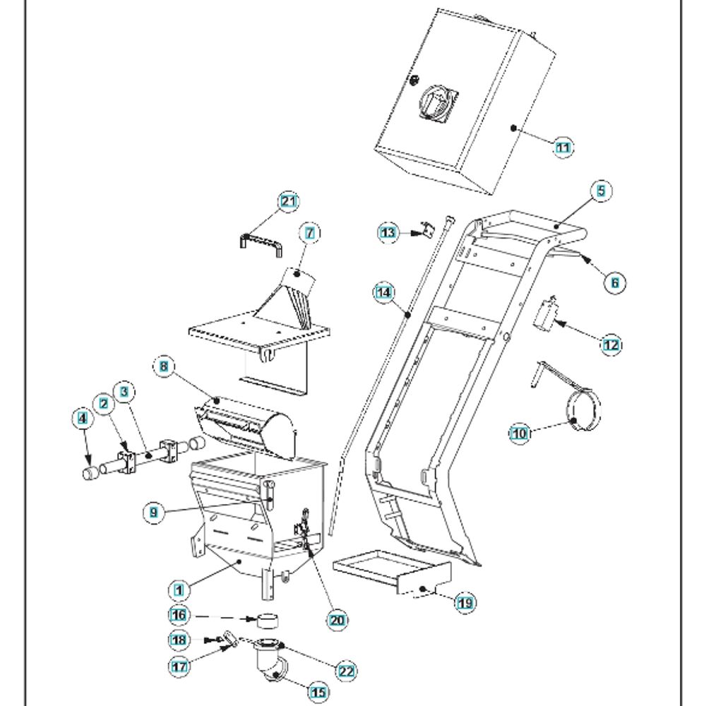 The Frame Assembly for Husqvarna BLASTRAC 1-8DPF40 Concrete Shot Blasters is designed to support the machine's structure and ensure stability during operation. This assembly includes key components such as brackets, fasteners, and support beams, which are essential for maintaining the integrity and performance of the blaster. Genuine Husqvarna parts ensure compatibility and durability.