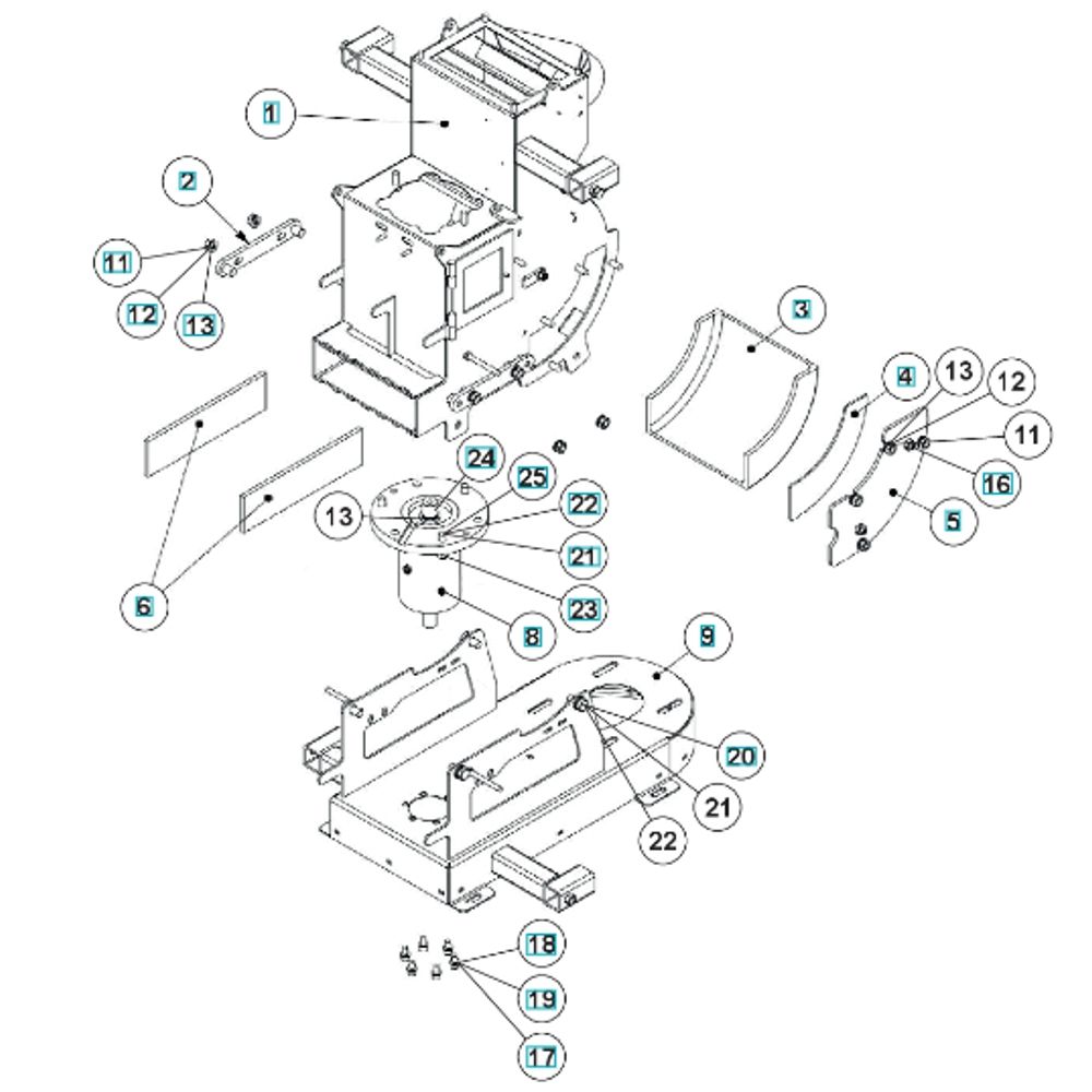 The Frame Assembly for the Husqvarna BLASTRAC EBE 200V Steel Shot Blaster is designed to provide robust support and stability during operation. This assembly includes key components such as brackets, fasteners, and structural elements, ensuring the machine operates efficiently. Genuine Husqvarna parts guarantee compatibility and durability, maintaining the integrity of the blaster.