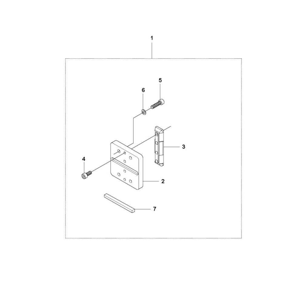 The Frame Assembly for the Husqvarna DS 70 AT Drill Stand includes key components to ensure stability and precision during drilling operations. This assembly supports the drill stand's structure, providing a reliable base for accurate drilling. Components such as brackets, supports, and fasteners are included to maintain the integrity and functionality of the drill stand.