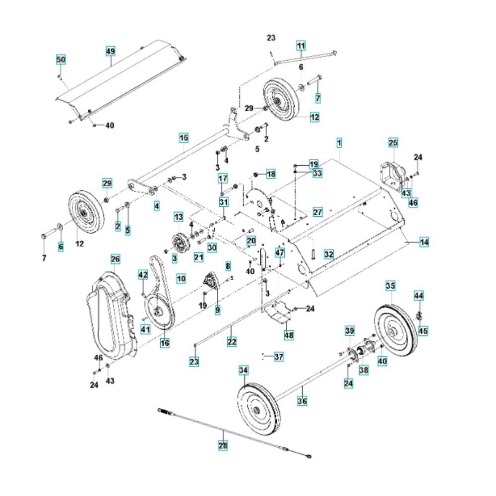 The Frame Assembly for the Husqvarna DT22HNR CE Dethatcher is designed to provide structural support and stability during operation. This assembly includes key components such as brackets, bolts, and crossbars, ensuring the machine functions effectively. Genuine Husqvarna parts ensure compatibility and durability, maintaining the dethatcher's performance over time.
