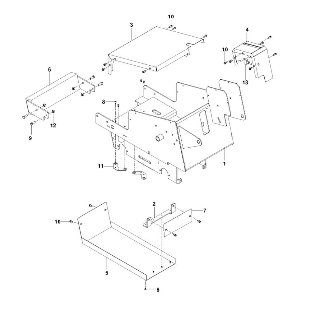 The Frame Assembly for the Husqvarna SC18A CE Sod Cutter is designed to provide structural support and stability during operation. This assembly includes key components such as brackets, fasteners, and support beams, ensuring the machine functions efficiently. Genuine Husqvarna parts are used to maintain the integrity and performance of the sod cutter.