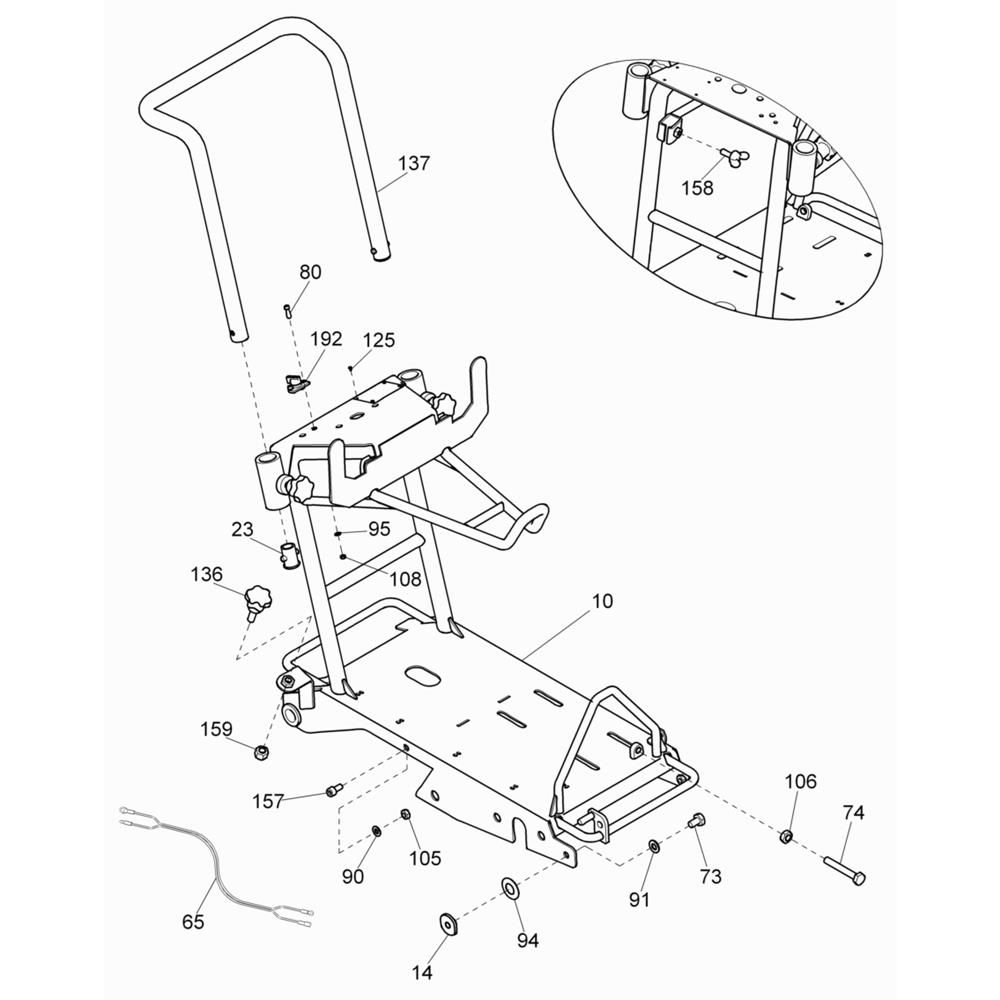 The Frame Assembly for the Wacker BFS 12 Floor Saw is designed to support the machine's structure and ensure stability during operation. This assembly includes components such as brackets, mounts, and fasteners, which are essential for maintaining the integrity and performance of the floor saw. Genuine Wacker Neuson parts ensure compatibility and reliability.