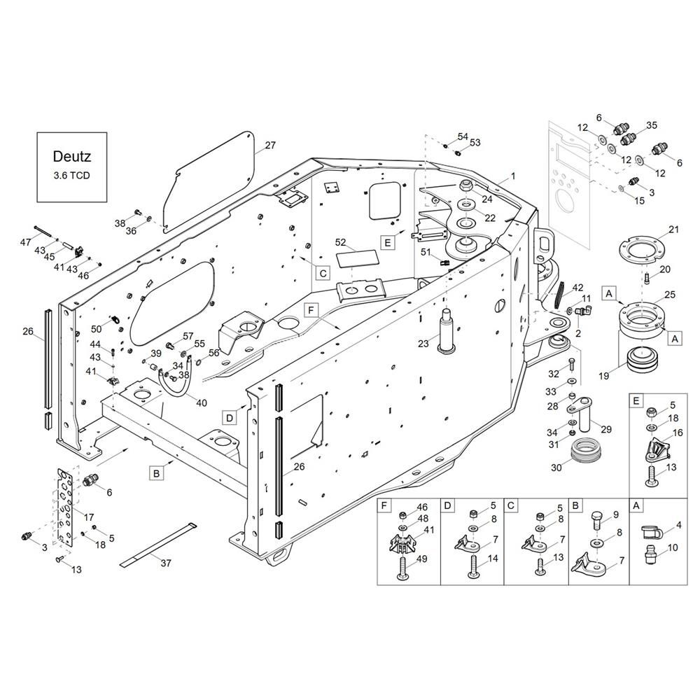 The Frame Drive Unit (TCD 3.6) Assembly for the Wacker DV60-2 Dumper is essential for efficient operation and reliability. This assembly includes key components such as gears, shafts, and bearings, ensuring smooth power transmission and optimal performance. Designed for durability, it supports the dumper's heavy-duty tasks and enhances longevity.