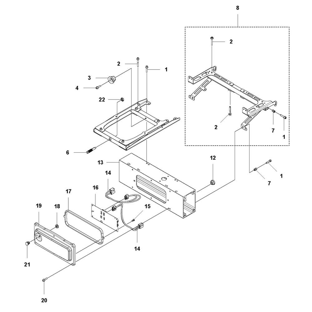 The frame for the Husqvarna 544-EPOS Robotic Mower is a crucial component, providing structural integrity and support for the mower's operation. This genuine Husqvarna part ensures compatibility and reliability, maintaining the mower's performance and durability. Designed for easy integration, it helps protect internal components from environmental factors.