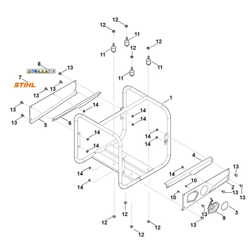 The frame for the Stihl WP 300 Water Pump is designed to provide robust support and protection for the pump's components. This genuine part ensures stability during operation, reducing vibrations and potential damage. Ideal for maintaining the integrity of your water pump, it is essential for both routine maintenance and repairs.