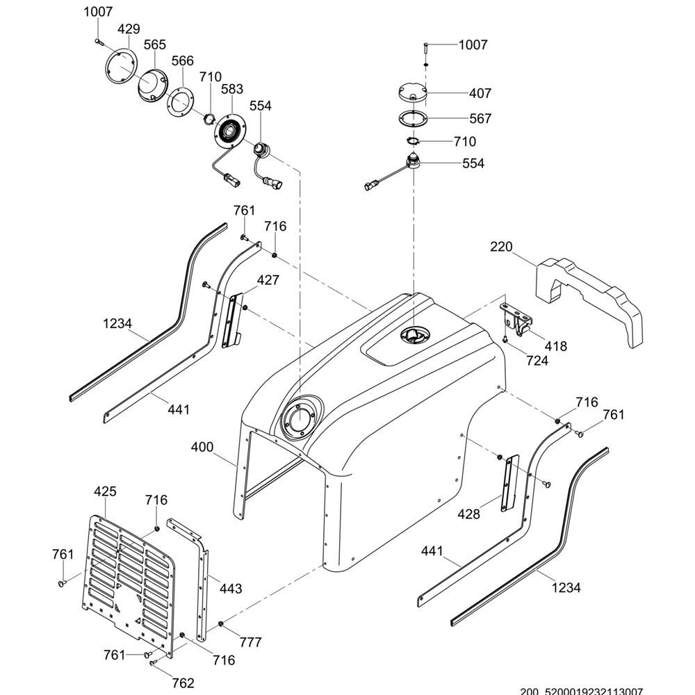 The Front Cover Assembly for the Wacker RTLx-SC3 Trench Roller is designed to protect and house key components, ensuring optimal performance and longevity. This assembly includes parts such as panels, fasteners, and seals, which are essential for maintaining the integrity and function of the machine. Genuine Wacker Neuson parts ensure compatibility and reliability.