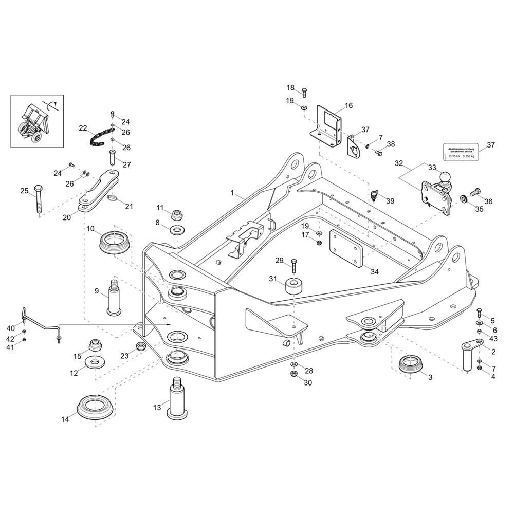 The Front Frame Assembly for the Wacker DV60-2 Dumper is designed to ensure structural integrity and reliable operation. This assembly includes key components such as brackets, beams, and fasteners, essential for maintaining the dumper's performance. Genuine Wacker Neuson parts ensure compatibility and durability, supporting heavy-duty use in construction and landscaping tasks.
