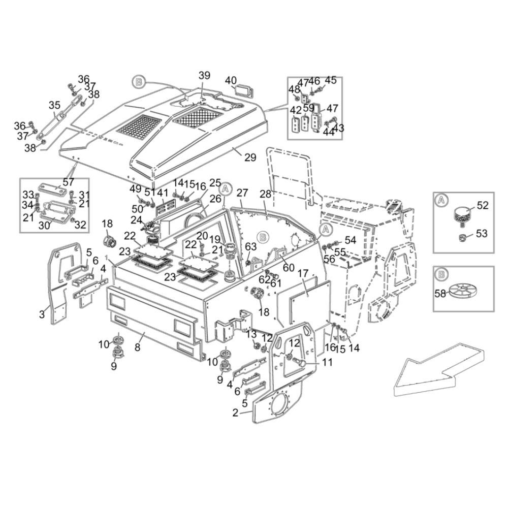 The Front Frame Assembly for the Wacker RD25 Roller is designed to ensure optimal performance and longevity of the machine. This assembly includes key components such as brackets, mounts, and fasteners, which are essential for the structural integrity and operation of the roller. Genuine Wacker Neuson parts ensure compatibility and reliability.