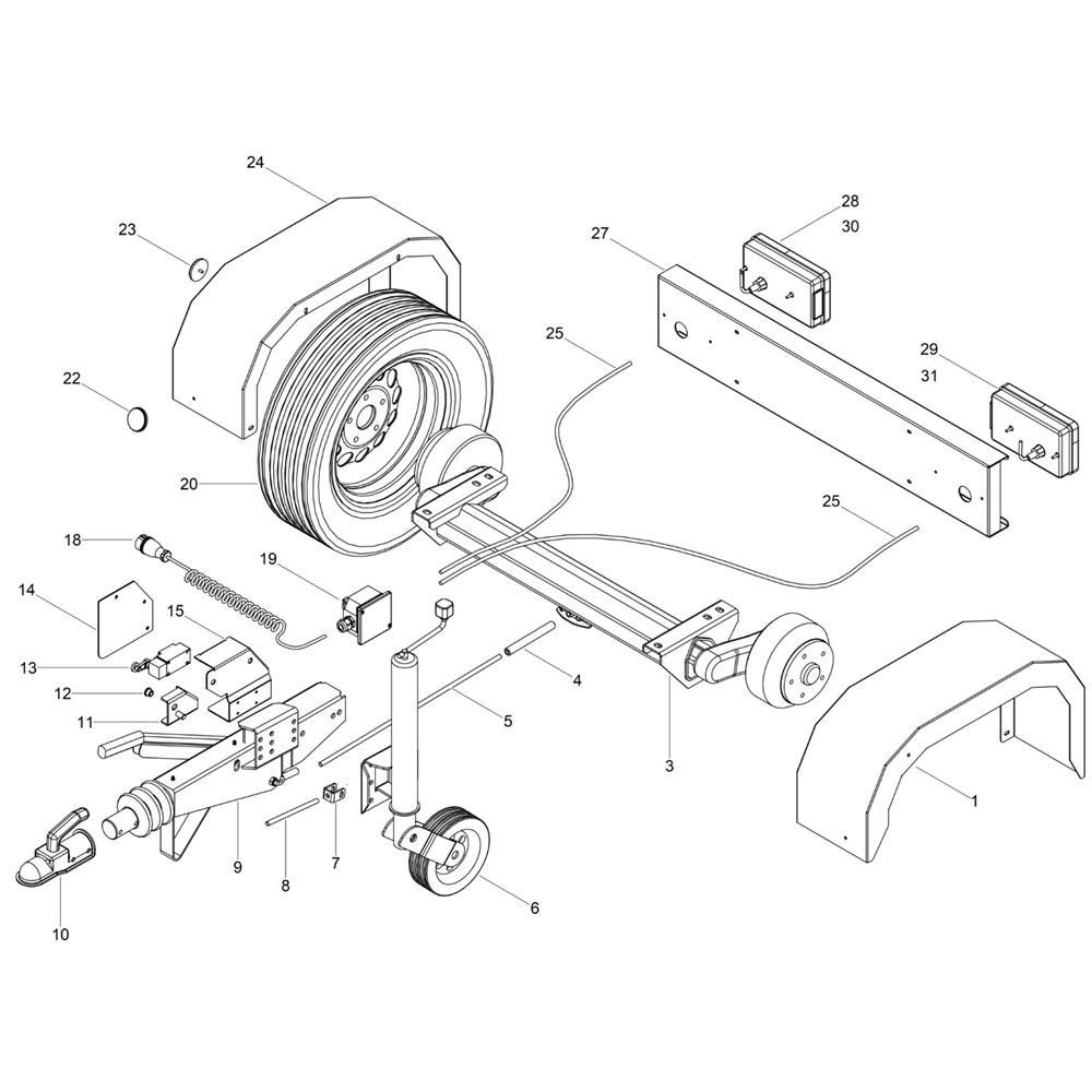 The Front Jack Assembly for the Wacker LTE4K Lighting Tower is essential for maintaining stability and ease of use. This assembly includes components such as the jack stand, mounting brackets, and adjustment levers, ensuring secure positioning and reliable performance. Designed for the Wacker Neuson Light Tower, it supports efficient operation and safety during deployment and transport.