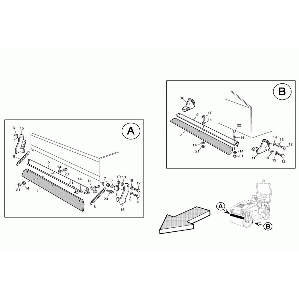 The Front Scraper Assembly for the Wacker RD25 Roller is designed to ensure optimal performance by preventing material build-up on the roller drum. This assembly includes components such as blades and brackets, which help maintain a clean drum surface, enhancing the roller's efficiency. Genuine Wacker Neuson parts ensure compatibility and durability, supporting the machine's longevity and reliability in various construction applications.