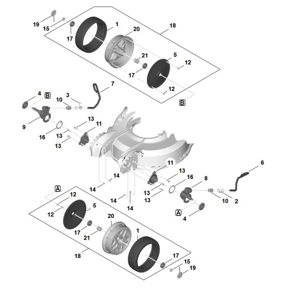 The Front Wheel Assembly for the Stihl RMA 750.0 V Lawn Mower is designed to ensure smooth operation and manoeuvrability. This assembly includes key components such as the tyre, which is essential for maintaining traction and stability on various terrains. Regular maintenance of these parts can help prolong the life of your lawn mower and ensure optimal performance.
