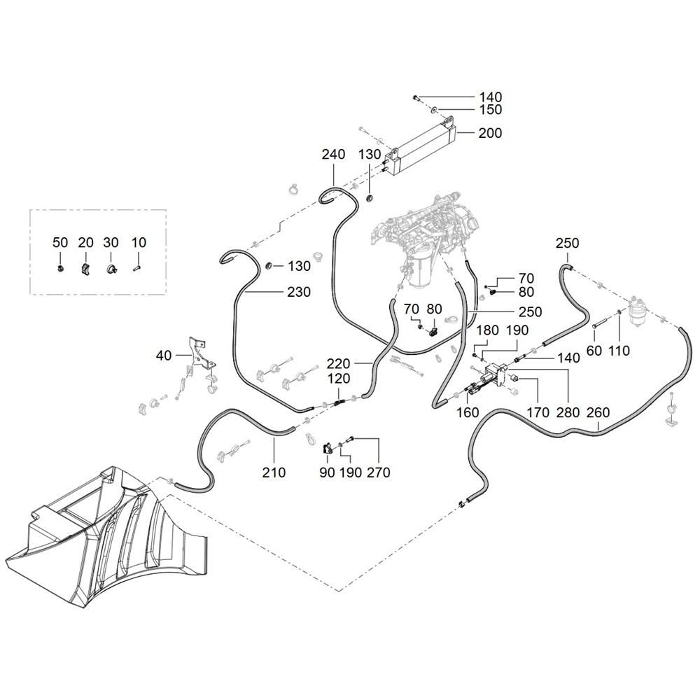 The Fuel Line Assembly for the Wacker TH625 Telehandler is designed to ensure efficient fuel delivery and optimal machine performance. This assembly includes components such as hoses, clamps, and connectors, which are essential for maintaining the telehandler's fuel system integrity. Regular maintenance of these parts helps prevent leaks and ensures reliable operation.