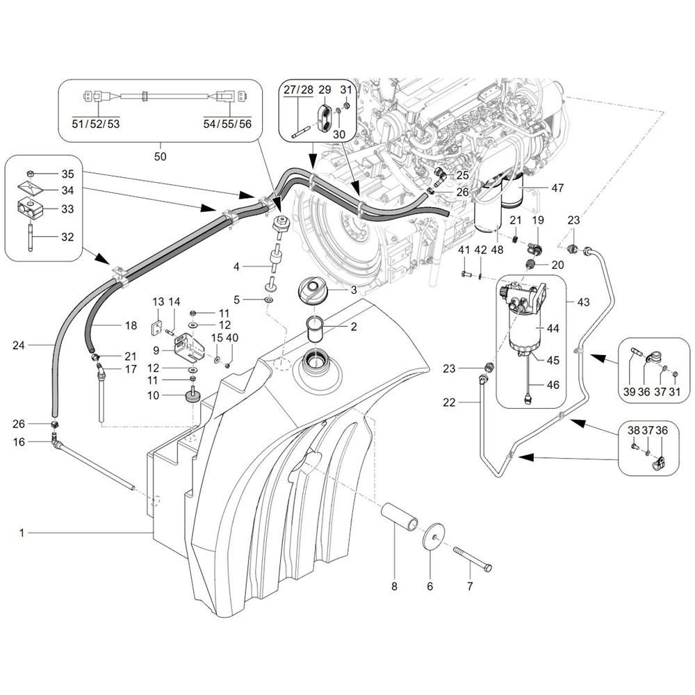 The Fuel System Assembly for the Wacker TH955 (416-26) Telehandler includes essential components to ensure efficient fuel delivery and engine performance. This assembly is crucial for maintaining the telehandler's operational reliability. Components may include fuel pumps, filters, injectors, and hoses, all designed to work seamlessly with the Wacker Neuson system.