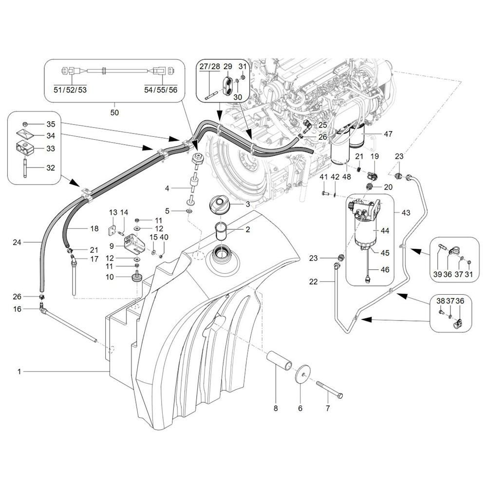 The Fuel System Assembly for the Wacker TH955 (416-36) Telehandler ensures optimal engine performance by delivering fuel efficiently. This assembly includes components such as fuel pumps, filters, and injectors, which are crucial for maintaining the telehandler's operation. Genuine Wacker Neuson parts are used to ensure compatibility and reliability. Regular maintenance of the fuel system can help prevent engine issues and extend the machine's lifespan.
