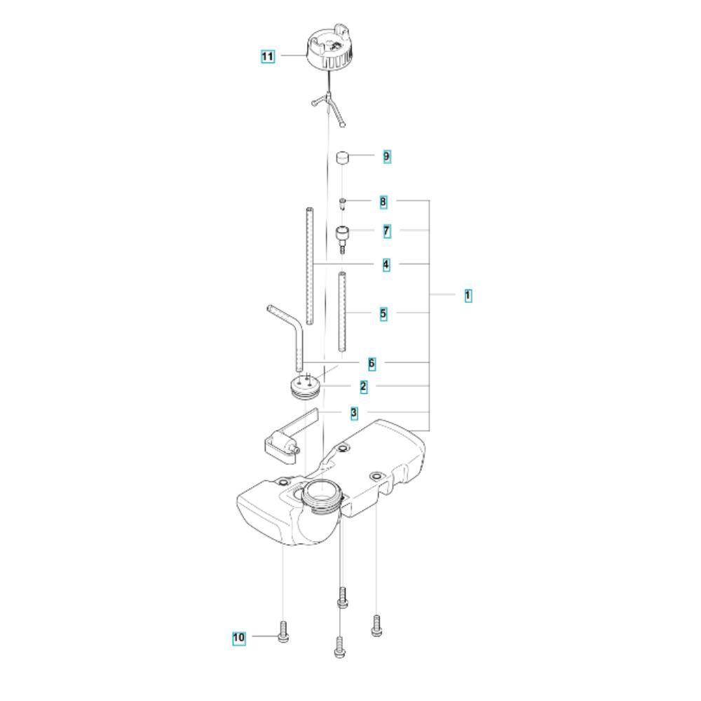 The Fuel Tank Assembly for the Husqvarna 122R Brushcutter is designed to ensure optimal fuel storage and delivery. This assembly includes components such as the tank, cap, and fuel lines, which are essential for maintaining the brushcutter's performance. Genuine Husqvarna parts ensure compatibility and reliability, making it ideal for routine maintenance and repairs.