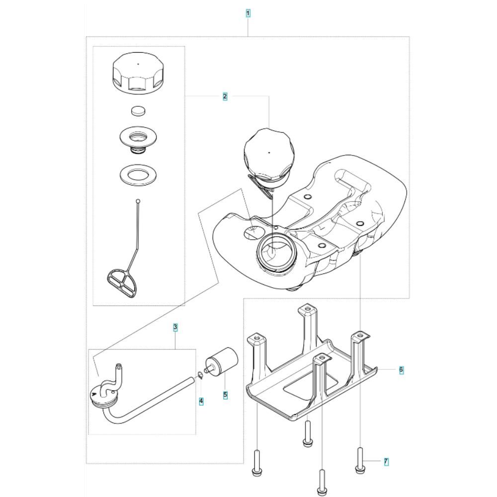 The Fuel Tank Assembly for the Husqvarna 143RST Brushcutter is designed to ensure optimal fuel storage and delivery. This assembly includes components such as the fuel cap, hoses, and mounting brackets, essential for maintaining the brushcutter's performance. Genuine Husqvarna parts ensure compatibility and reliability, supporting efficient operation during trimming and cutting tasks.