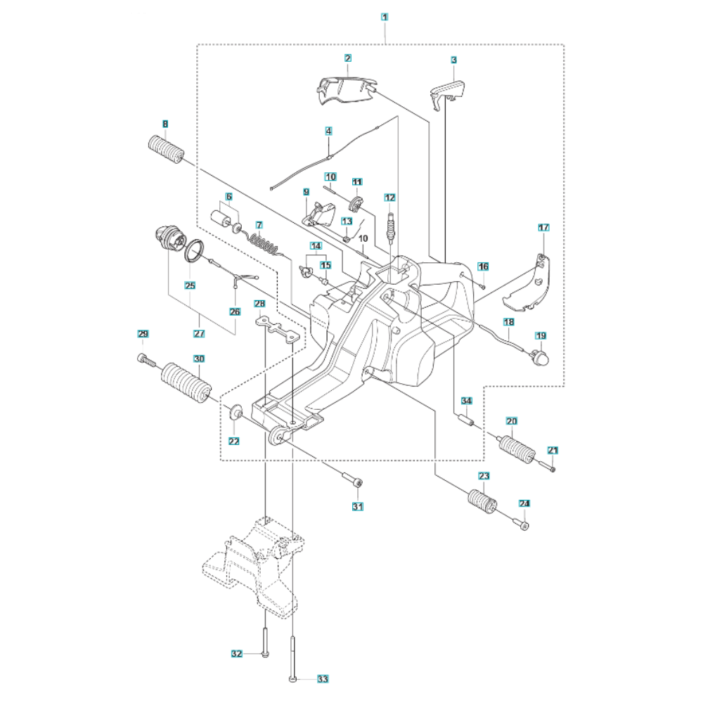 The Fuel Tank Assembly for the Husqvarna K1270 II Disc Cutter is designed to ensure optimal fuel storage and delivery. This assembly includes components such as caps, hoses, and seals, which are crucial for maintaining the cutter's performance and efficiency. Genuine Husqvarna parts ensure compatibility and reliability, supporting the machine's demanding cutting tasks.