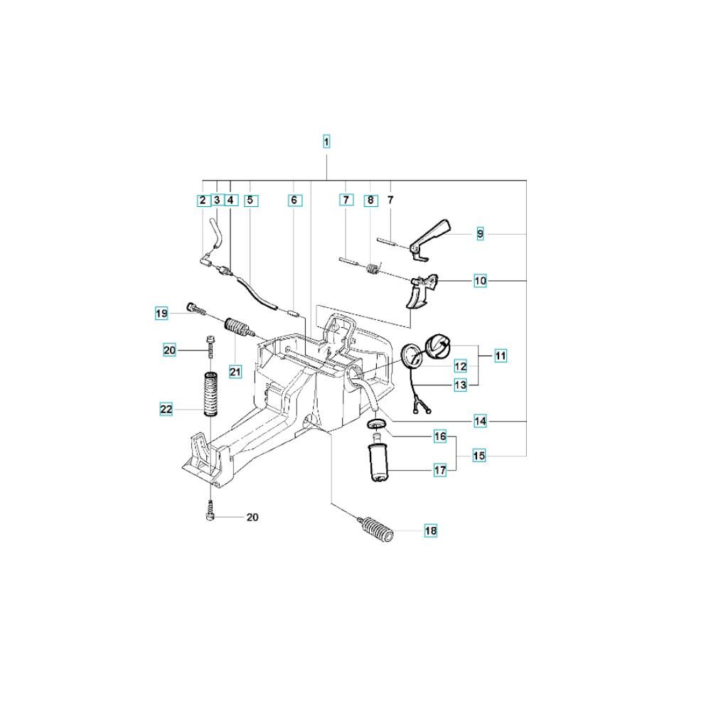 The Fuel Tank Assembly for the Husqvarna K950 Chain Concrete Cutter is designed to ensure optimal fuel storage and supply during operation. This assembly includes components such as the fuel cap, hoses, and seals, which are essential for maintaining the cutter's efficiency and performance. Genuine Husqvarna parts ensure compatibility and reliability.