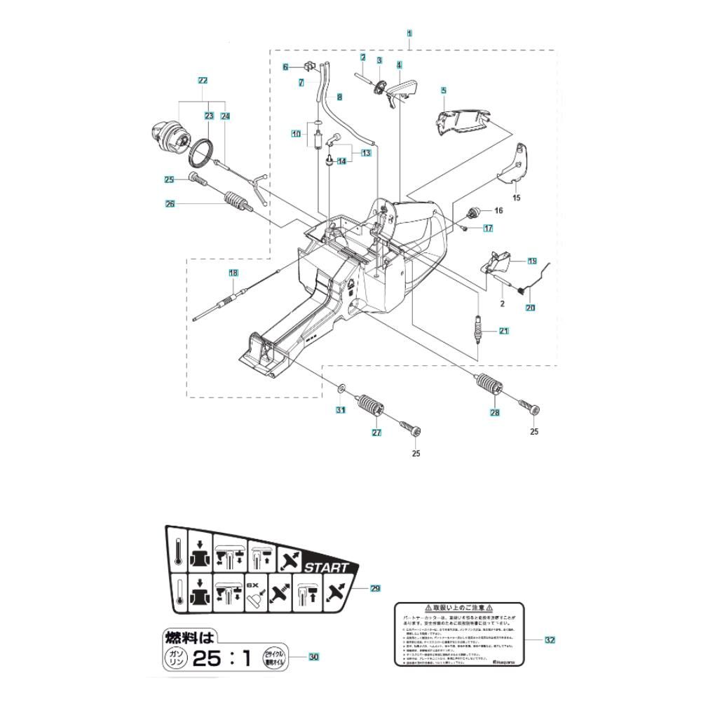 The Fuel Tank Assembly for the Husqvarna K970 Chain III (2-Bolt) Concrete Cutter is designed to ensure optimal fuel storage and delivery. This assembly includes components such as the fuel cap, hoses, and seals, which are essential for maintaining the cutter's performance. Genuine Husqvarna parts ensure compatibility and reliability, helping to extend the machine's service life.