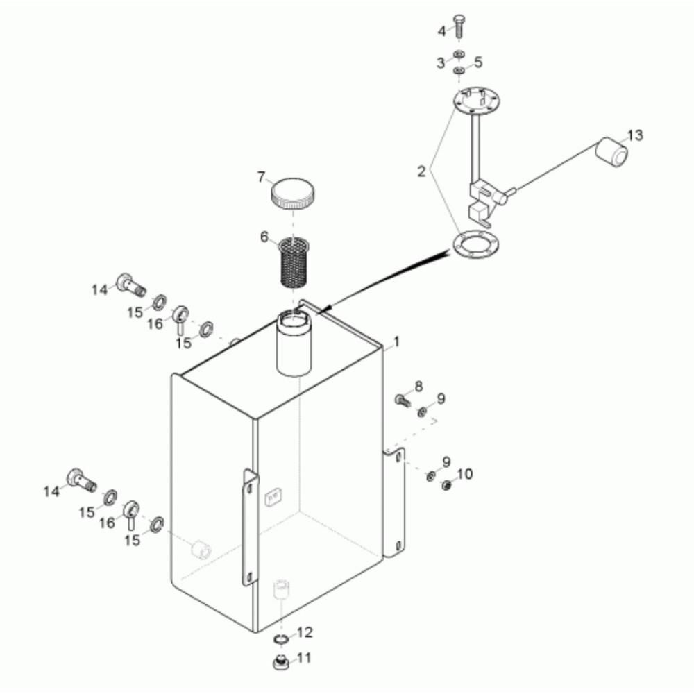 The Fuel Tank Assembly for the Neuson 6001 Dumper is designed to ensure optimal fuel storage and delivery. This assembly includes components such as the tank, caps, and fittings, which are essential for maintaining the dumper's efficiency and reliability. Genuine Wacker Neuson parts are used to ensure compatibility and performance.