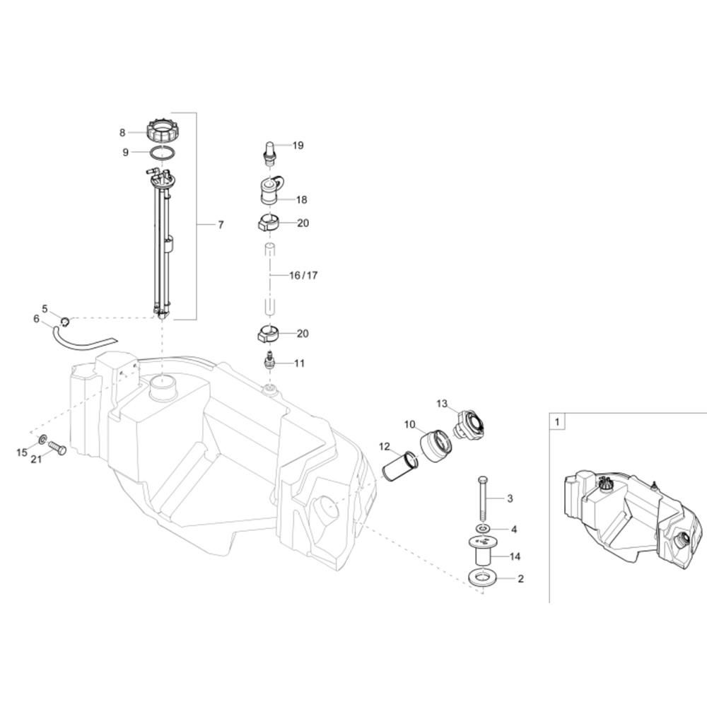The Fuel Tank Assembly for the Wacker DV60 Dumper is designed to ensure efficient fuel storage and delivery. This assembly includes components such as the tank, cap, and hoses, which are crucial for maintaining the dumper's performance. Genuine Wacker Neuson parts ensure compatibility and reliability, supporting the machine's operational needs.