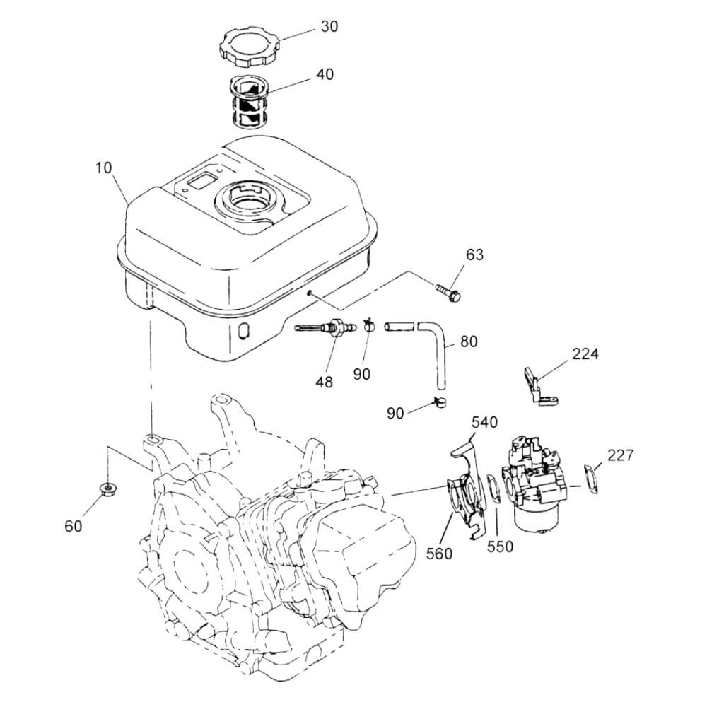 The Fuel Tank Assembly for the Wacker WM 130 Engine is designed to ensure optimal fuel storage and delivery. This assembly includes components such as the tank, cap, and necessary fittings, providing a secure and efficient fuel system. Essential for maintaining engine performance, it helps prevent leaks and ensures consistent fuel flow.