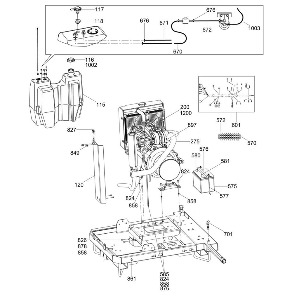 The Fuel Tank (D1105) Assembly for the Wacker Neuson LTV6K Lighting Tower is designed to ensure efficient fuel storage and supply. This assembly includes components such as caps, hoses, and fittings, essential for maintaining the lighting tower's operation. Genuine Wacker Neuson parts ensure compatibility and reliability, supporting the tower's performance in various conditions.