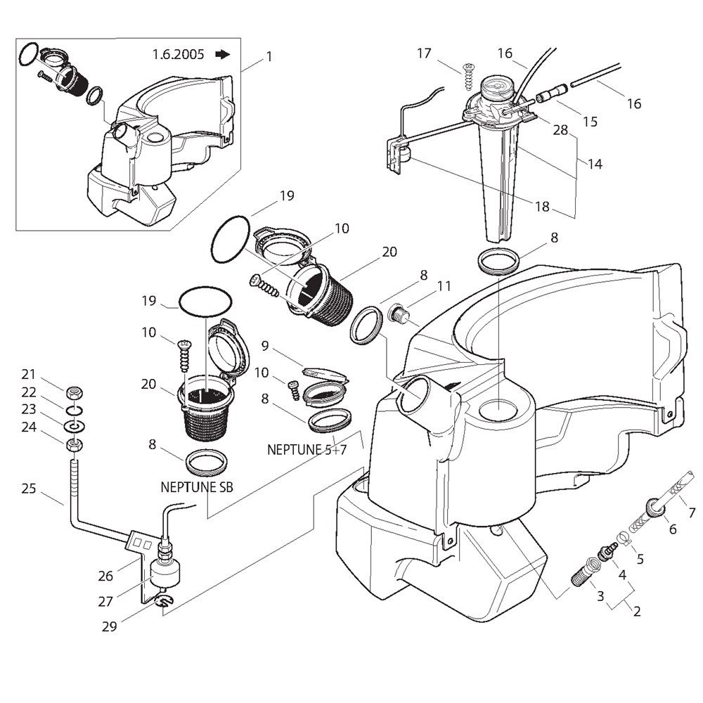 The Fuel and Detergent Tank Assembly for the Nilfisk MH 7P-175/1260 P 400/3/50 Pressure Washer includes essential components for efficient operation. This assembly ensures the proper storage and delivery of fuel and detergent, crucial for maintaining optimal cleaning performance. Components typically include tanks, hoses, and connectors, designed to fit seamlessly with the Nilfisk model.