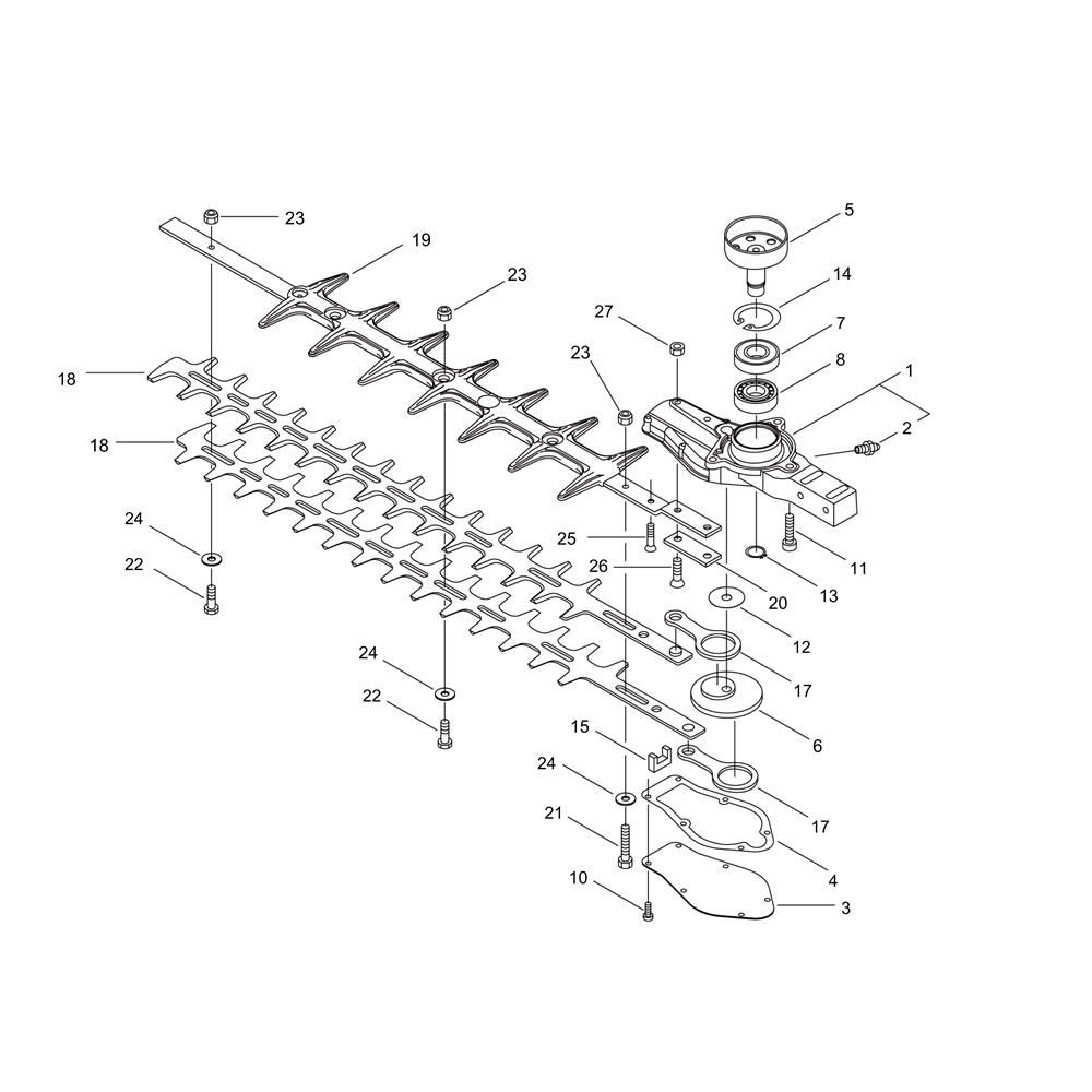 The Gear Case and Cutter for the Shindaiwa DH221 Hedgetrimmer are essential components designed to ensure smooth operation and precision cutting. These genuine Shindaiwa parts are crafted to fit perfectly and maintain the performance of your hedgetrimmer. The gear case houses the mechanisms that drive the cutter, ensuring efficient power transfer and durability.