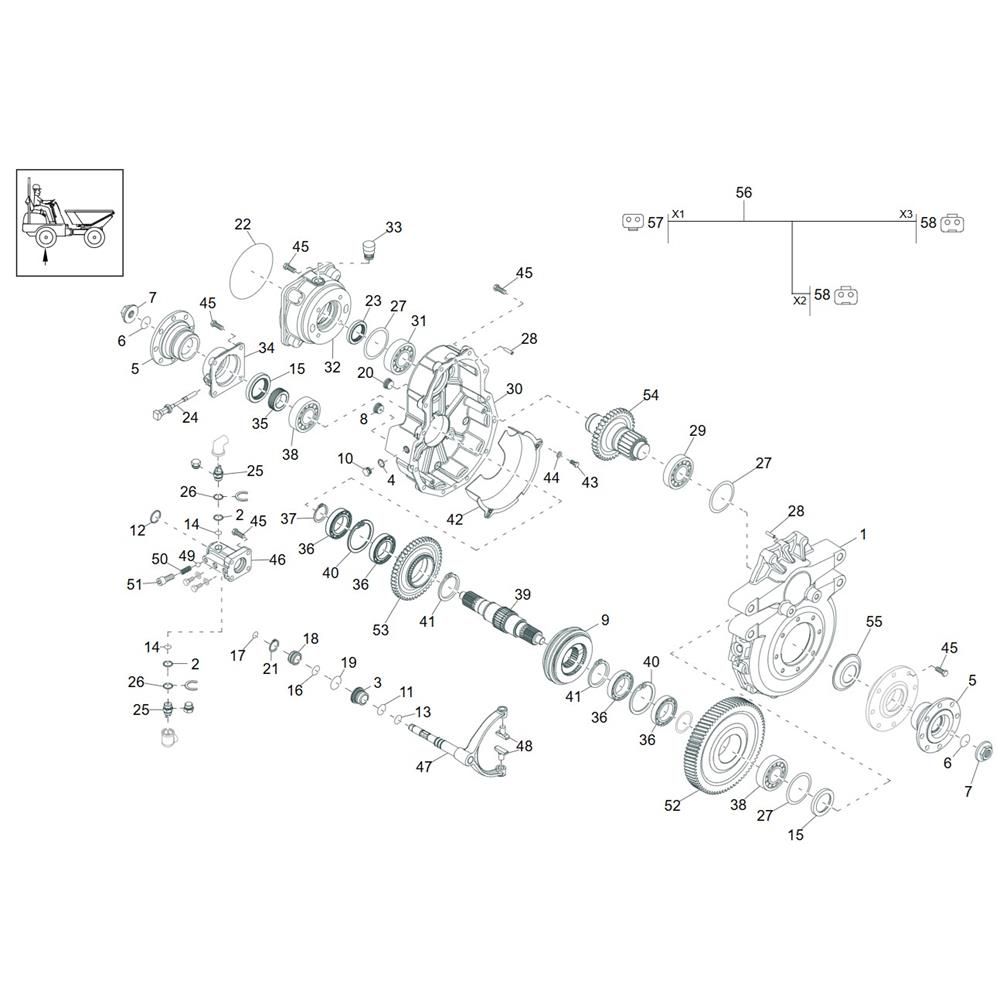 The Gearbox Assembly for the Wacker Neuson DW90 Dumper is designed to ensure efficient power transmission and reliable operation. This assembly includes key components such as gears, shafts, and bearings, which are essential for maintaining the dumper's performance. Regular maintenance of these parts helps in extending the lifespan of the machinery and ensuring smooth operation.