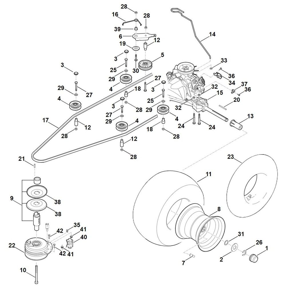 The Gearbox, Rear Wheel, and Blade Clutch for the Stihl RT 6112.1 ZL Ride on Mower are essential components for maintaining optimal performance. These genuine Stihl parts ensure smooth operation and longevity of your mower. The gearbox facilitates efficient power transmission, the rear wheel provides stability and traction, while the blade clutch engages and disengages the cutting blades effectively.